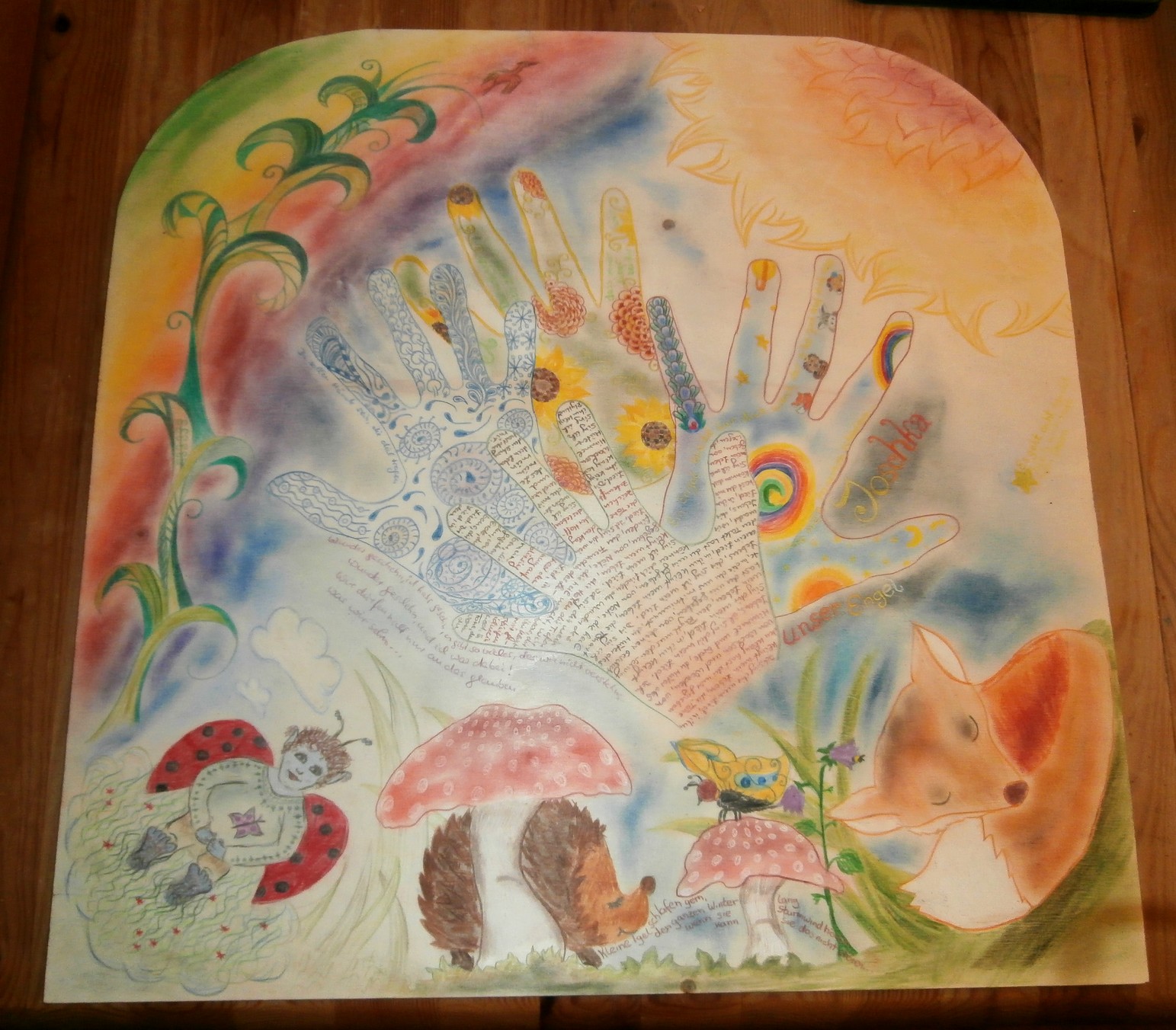 Spanplatte zugeschnitten, auf die wir mit Buntstiften alles malen und schreiben konnten,